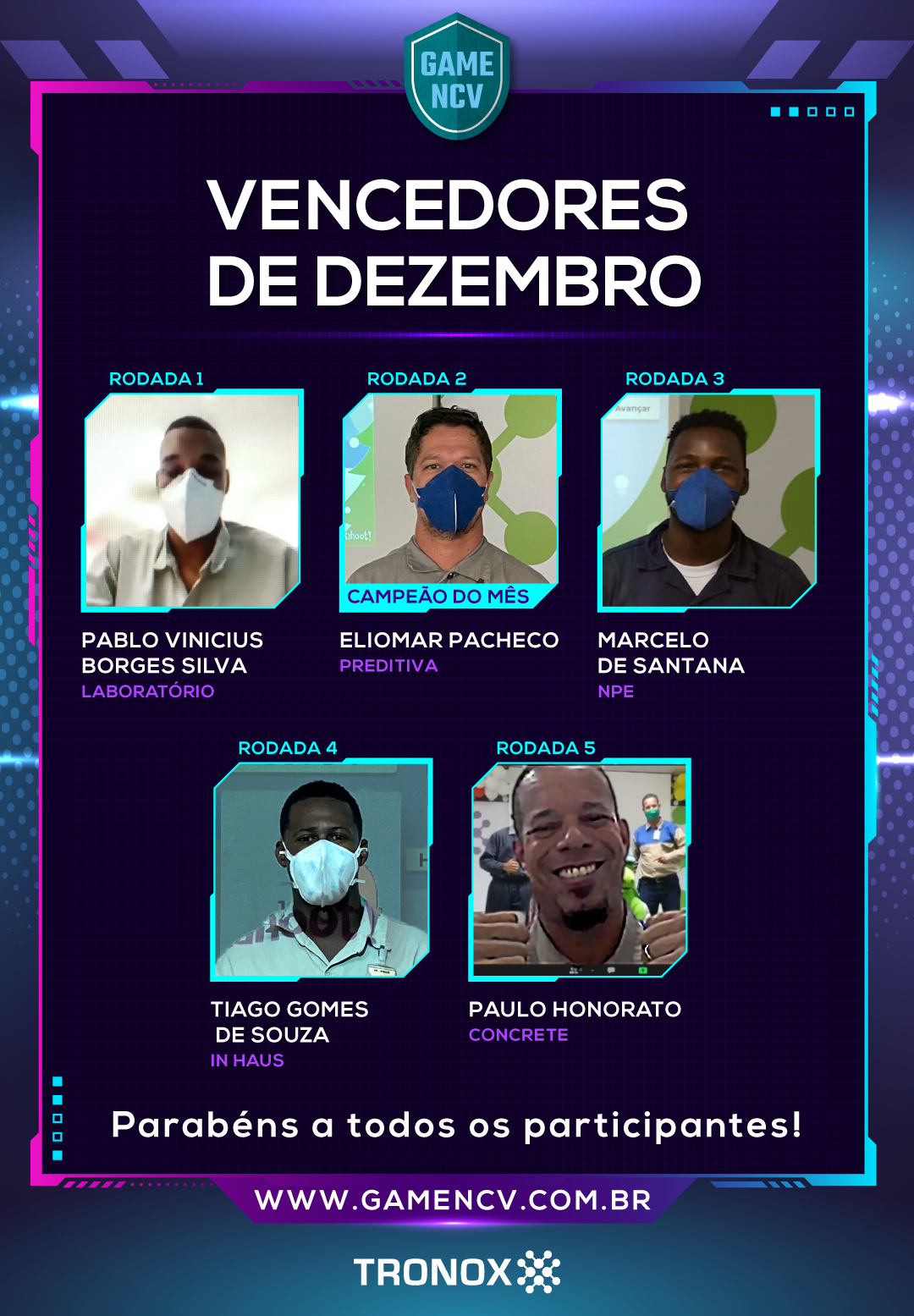 Campeões de dezembro 04/01/2022 Os participantes das primeiras rodadas do Game NCV 2021 deram um show de conhecimento. Parabéns! Estes são os vencedores de dezembro:
