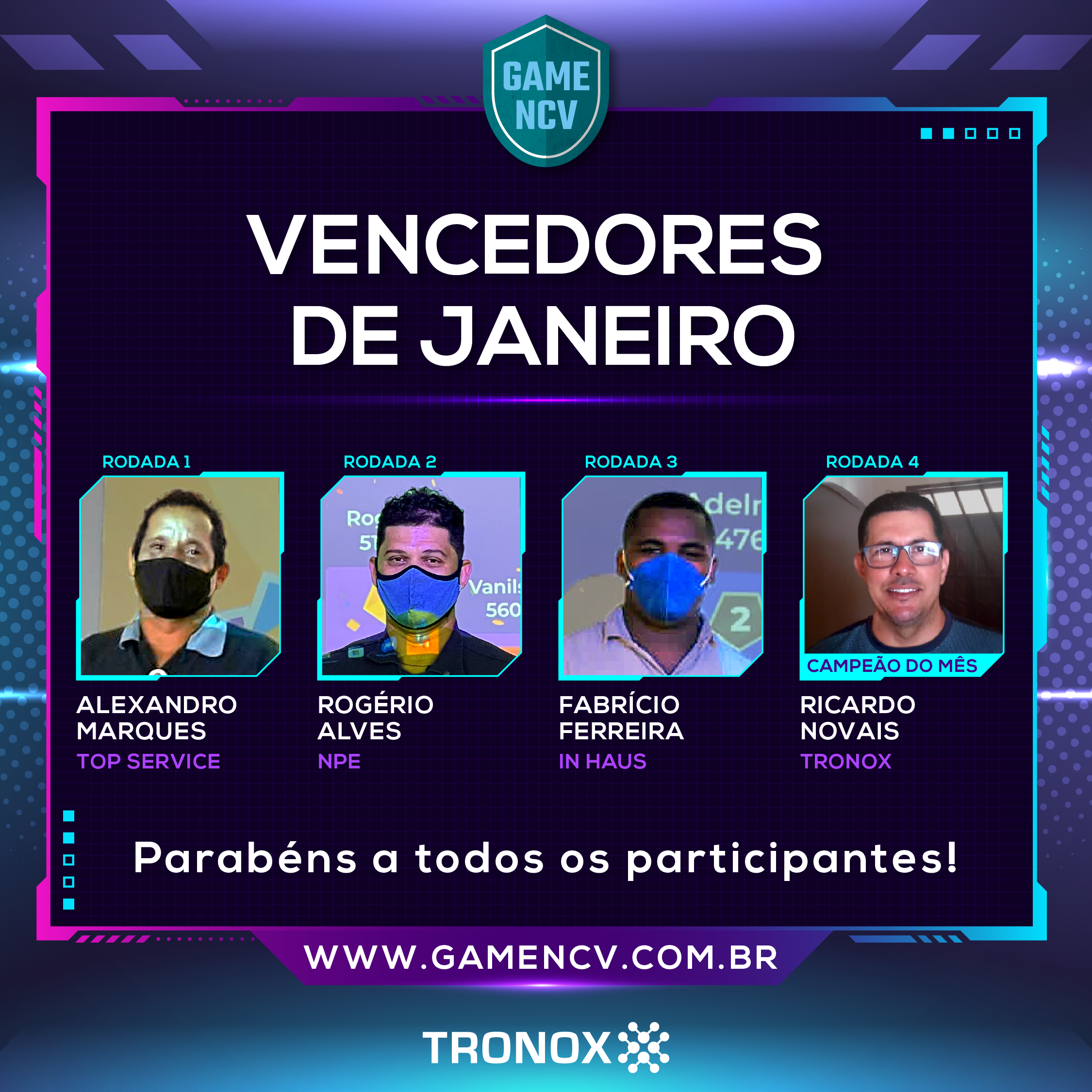 Campeões de janeiro 30/01/2022 Parabéns aos vencedores das rodadas e a todos os participantes, vocês deram um show!